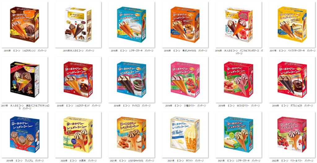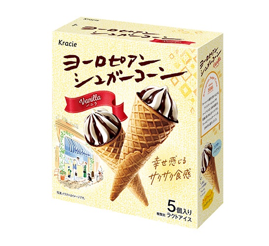 “European Sugar Cone” is a long-selling cone ice cream that has been manufactured and marketed by Kracie for nearly four decades (first use in 1986). Since its launch, the “European Sugar Cone” ice cream has been characterized by its distinctive three-layer combination of vanilla ice cream, chocolate coating, and a crispy sugar cone, which together create a well-balanced texture and flavor.