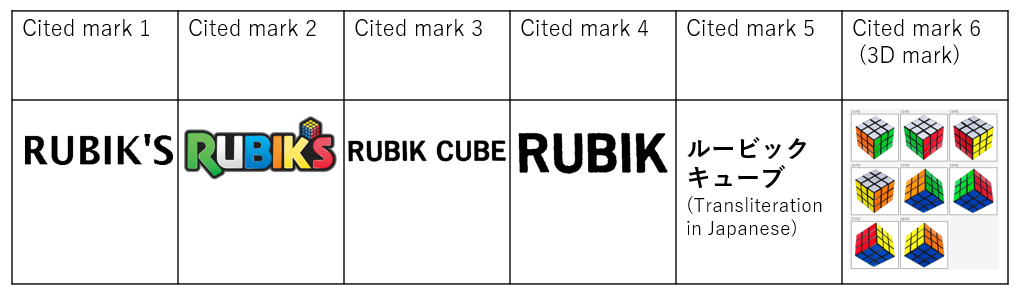 The JPO Opposition Board admitted the remarkable degree of recognition and popularity of the Cited mark Nos. 3, 5, and 6 as source indicators of the claimant’s business based on the evidence submitted by the claimant. However, the Board questioned whether the other Cited marks, which mainly consist of the term “RUBIK,” have also become famous for identifying the claimant’s source.