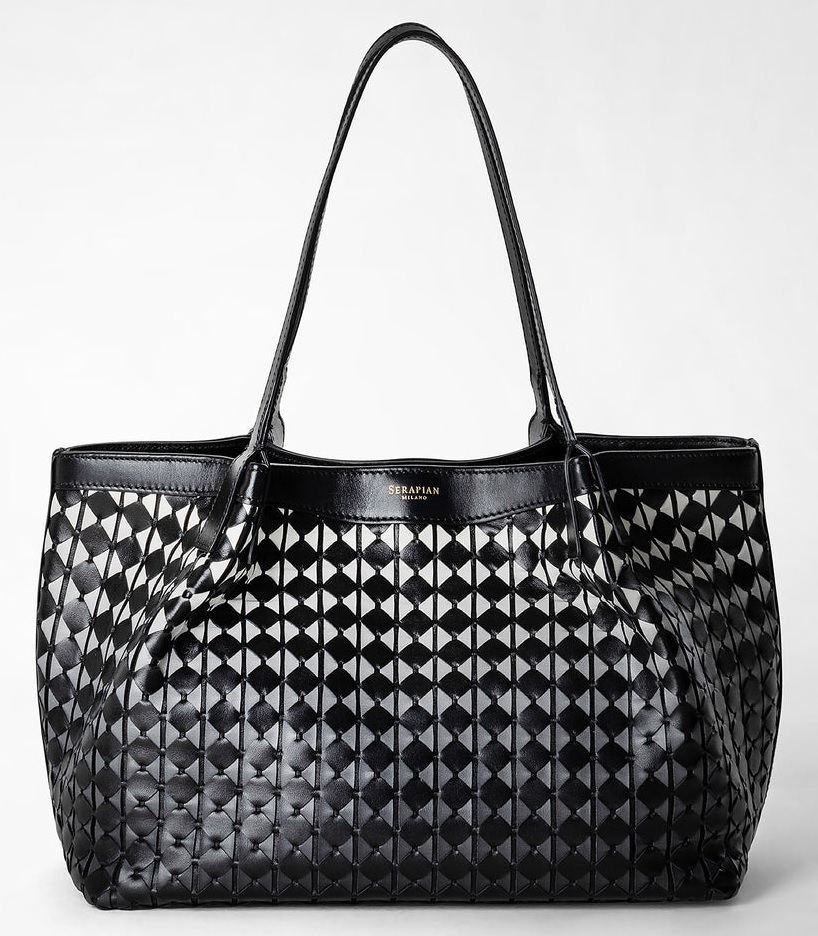 The Serapian Mosaico pattern is known for its iconic hand-weaving technique, which dates back to 1947 and serves as an emblem of the Italian luxury brand, Serapian.